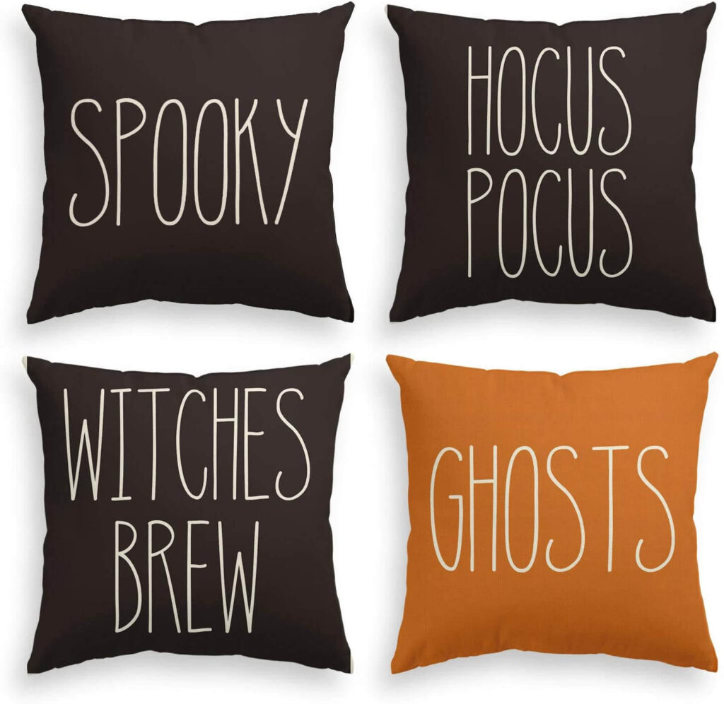 I always say this and I’m going to keep saying it! Cushion covers are one of the easier ways to get yourself into the Halloween spirit! They are so easy to switch out and require minimal to no effort! You can acquire a handful of seasonal ones and switch them out whenever you please. You can just throw them in the laundry once you’re done and store them away again til next spooky season.