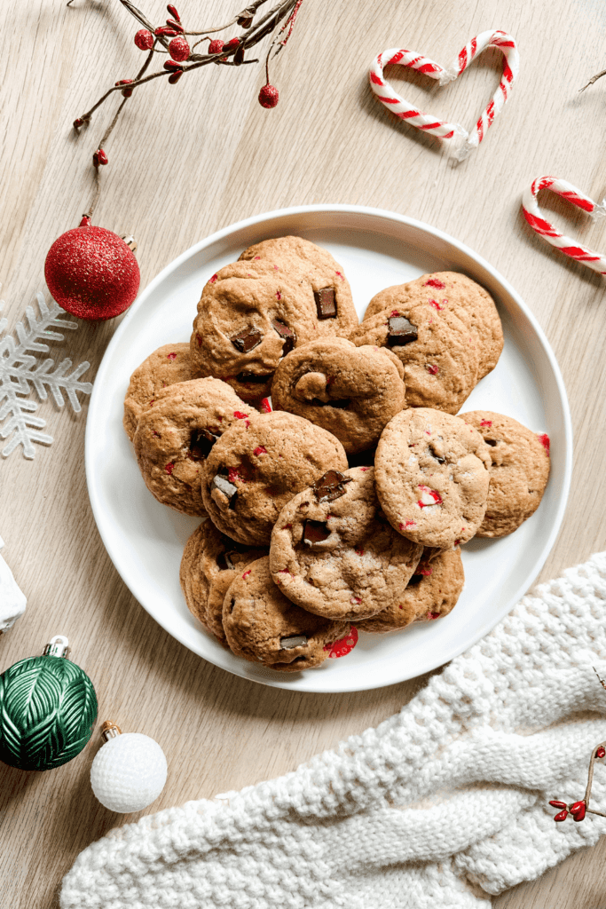 Overall, Candy Cane Chocolate Chip Cookies combine the classic taste of chocolate chip cookies with a festive mint twist, creating a unique and enjoyable flavor experience perfect for the holiday season!