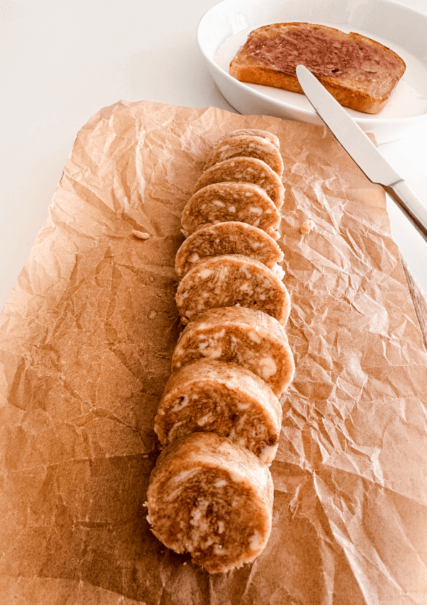 - Roll into a log on parchment paper or plastic wrap and store in the fridge or use right away!