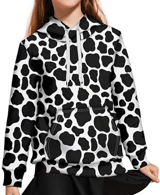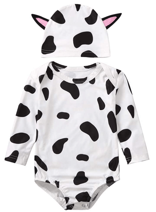 Last but not least, a cute cow costume! Cows are adorable and their prints are super cute! What you’ll need to be a cow is literally the whole outfit in cow prints and some cow ears. Before your child goes out, you can use face paint to paint a pink nose and maybe a black spot over one eye.