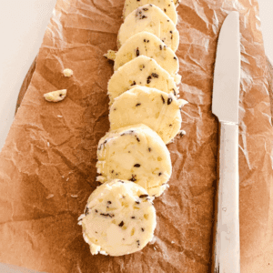 - Roll into a log on parchment paper or plastic wrap and store in the fridge or use right away!