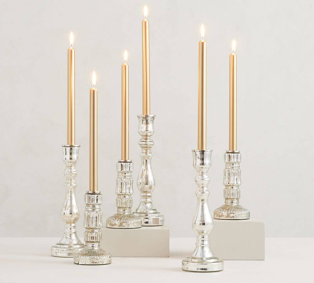 To achieve this gorgeous tablescape, you’ll need to have a gorgeous silk napkin to really bring out the pop of gold or red, gold or red table rings, gold flatware and very tall and beautiful candlestick holders. You can also bring out natural elements such as wood and greenery.