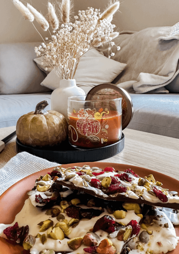 Read more for all the details on Halloween Pretzel Bark. Cozy season equals lots of movie nights and of course, movie nights equals lots of treats! What is your preferred treat? Sweet or salty? Why not both?! Halloween Pretzel Bark…
